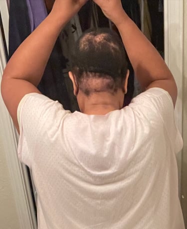 "The bald spot from wearing weave too tight in the center of my head has now grown in! Thank you I will continue to use D's Hair Oil for the rest of my hair."